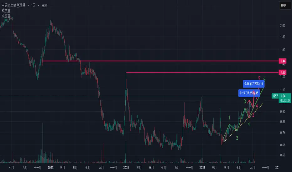這邊我個人認為會是這第一大波初升段的滿足價區,以現價1.04來看,