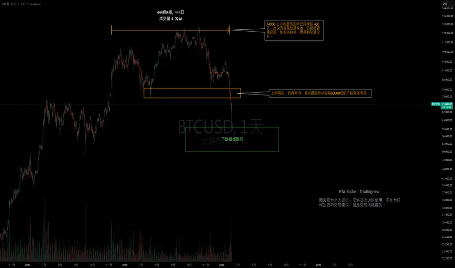 74000上方的震盪區間已持續超400天,此次有效破位意味著:後續若要重啓新一輪多頭趨勢,週期將顯著拉長。
