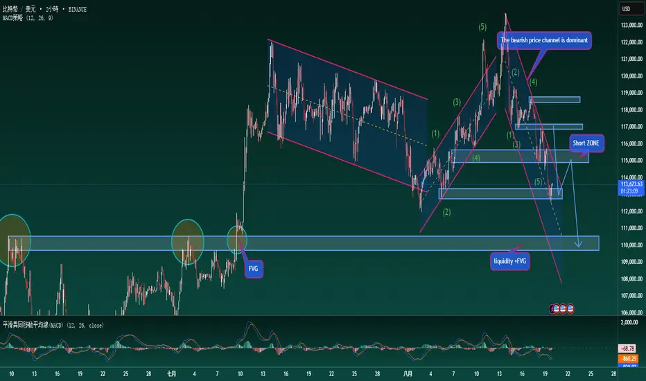 昨天分享的交易思路依然在精準運行。BTC 持續沿著下降通道波動,每次觸及上方趨勢線後都迅速回落。目前價格正在通道中軌附近(約 113,000 一帶)反應,這正是我之前提示過需要重點關注的關鍵位置。
