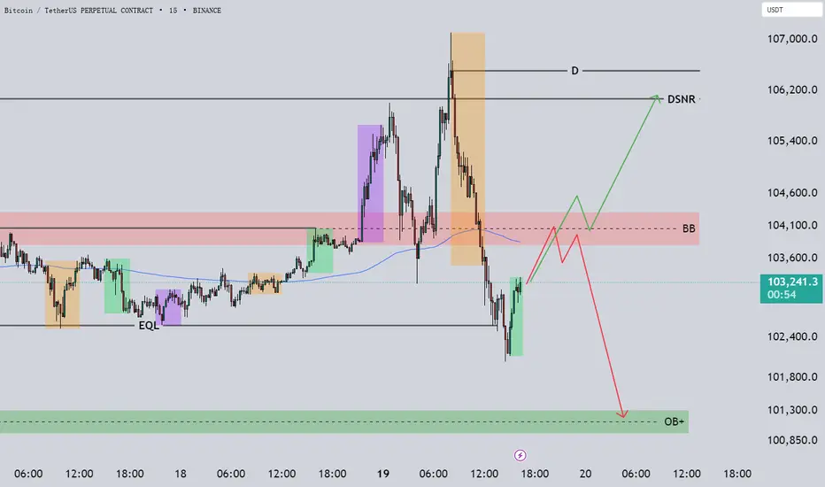 若突破失敗,行情可能轉為雙頂結構,下探 OB+ 支撐帶。