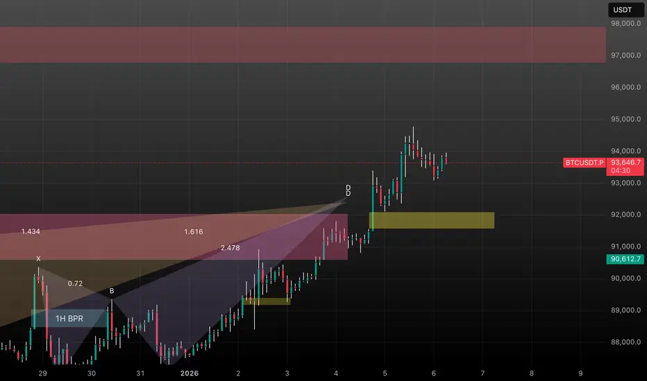 BTC本週CME出現跳空突破缺口,這表示BTC的回補目標為天圖SIBI,價格預期目標97000,但目前價格上漲稍微趨緩,期望價格先行回補91800左右,並且獵取完前方擺盪低點後繼續往高時間級別目標前進!https://tw.tradingview.com/chart/hj60jqG1/