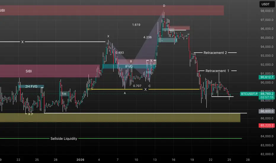BTC週一開盤前想法:本週假日BTC向下跌破本週製造的等低點,並且目前價格收回前低,雖然價格明顯是空頭趨勢,但不可忽略高時間節別得下跌回調,上方呈現兩個擺盪高點,是市場期望前往獵取的位置,也期望回補上方價格失衡區,主要重點為整體為空頭趨勢,價格下週期望向上獵取擺盪點與填補失衡區!https://tw.tradingview.com/chart/hj60jqG1/