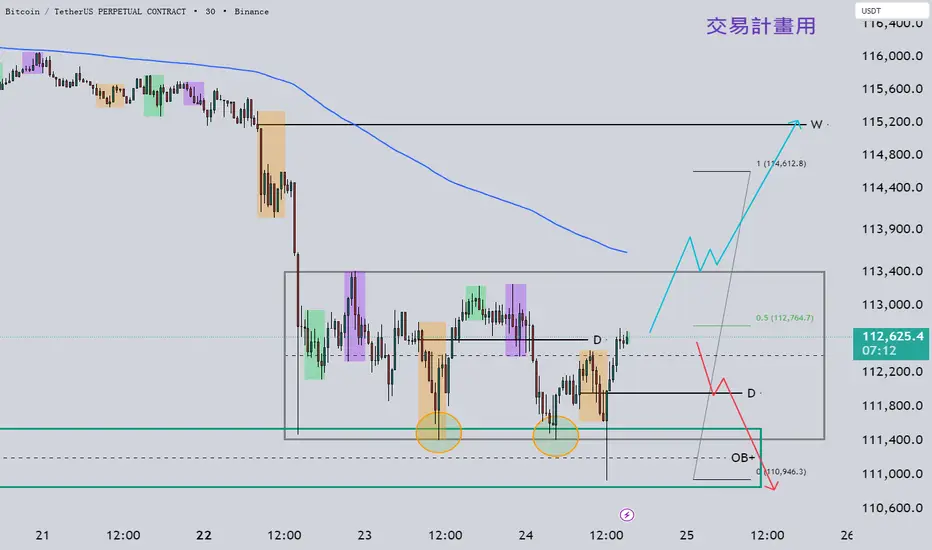 D 區(日內開盤):$112,000 → 當前短線支撐/壓力,守穩有助延續反彈