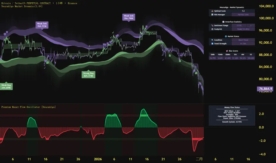 關鍵阻力:Close > 97,965,這是 1 月 14 日的擺動高點收盤價。在下一次日線動能周期與熊市反轉出現之後,應該能夠確定一個更近的止損位。