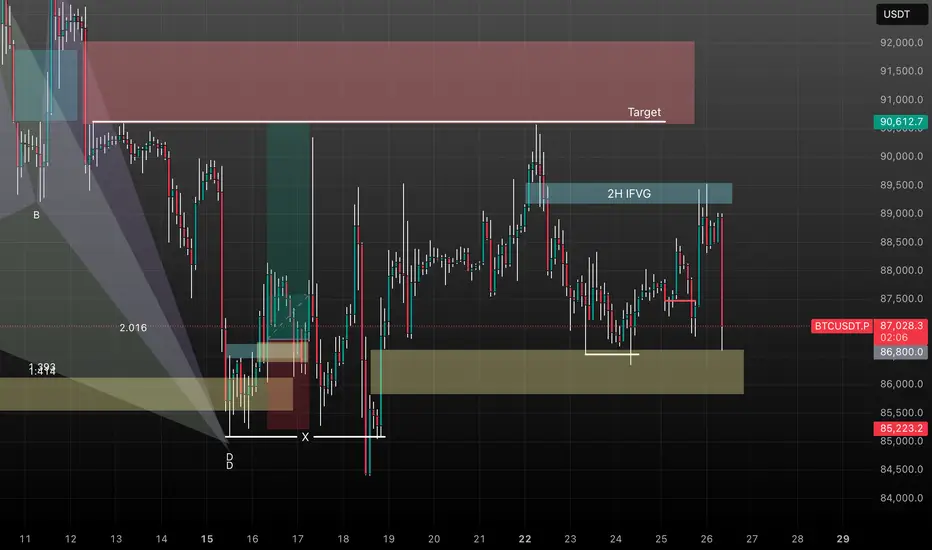 BTC在週五開盤獵取下方低點後快速向上出現位移,原先預期價格會移動到上方Target,但價格處碰到2H IFVG後出現兩次收針反應,並且在下跌前拿掉前高,這是價格反應給的提示,暗示價格將出現回撤或反轉,所以價格的反應遠比任何畫出來的圖形重要的多!https://tw.tradingview.com/chart/hj60jqG1/
