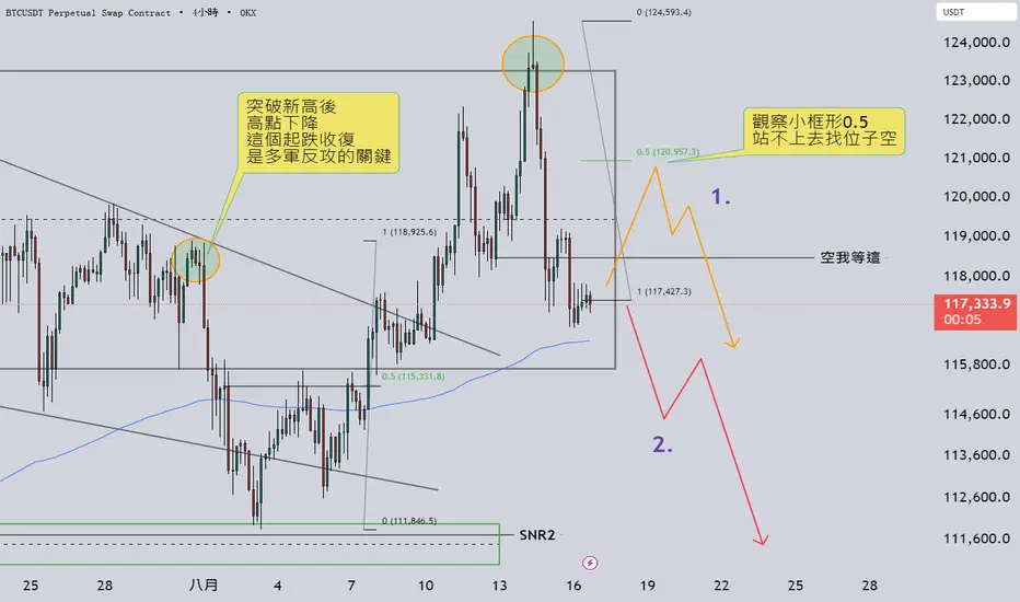 前高:$124,593 → 假突破回落區,多頭若要翻轉必須站穩
