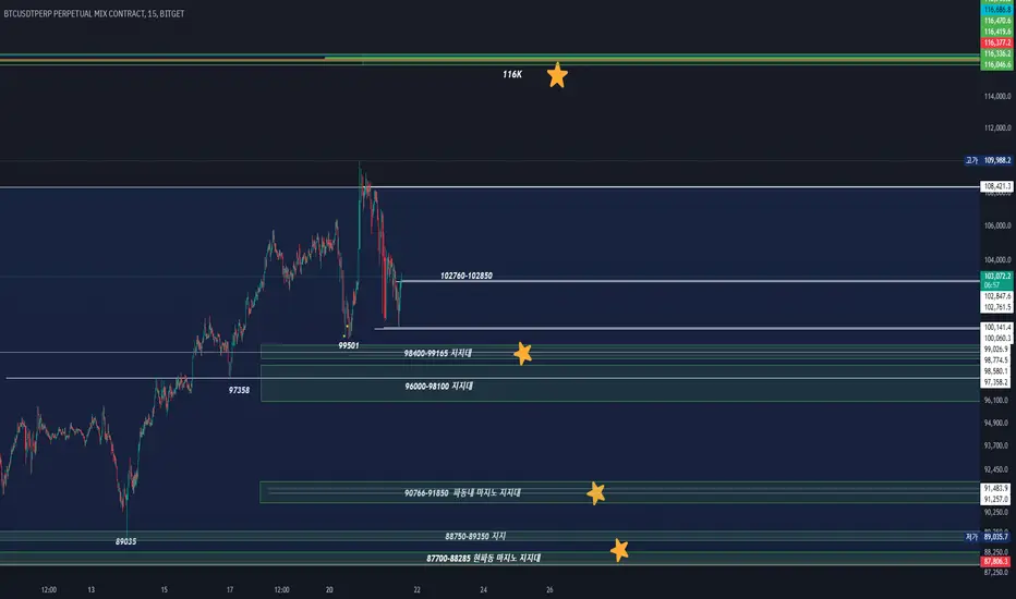 *고점전의 저항 108000-108400저항대가 추가되었고 돌파/지지한다면 고점갱신부터 재차 숏존이지만 이번턴의 116k가 열린다고보고있고