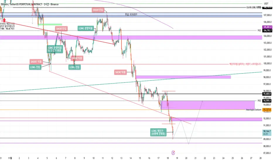 그렇다면 88.2k - 88.8k 강한 유동성이 있는 자리로 즉각 추가적인 반등이 나올 수 있습니다
