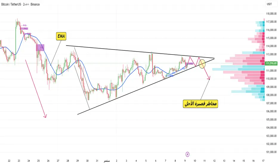 هل ستنطلق BTC من المثلث لاستئناف الاتجاه الصعودي ، أم هل ستكون هذه إشارة تبدأ لتعديل أعمق؟ 📉
