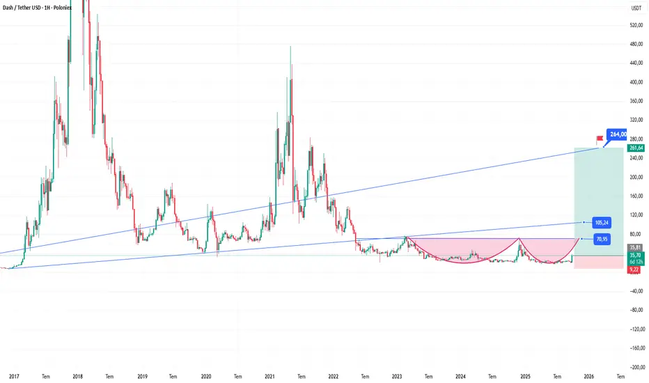 Bugün paylaşacağımız kripto DAHS USDT çifti. 124. Sırada 0,0105 Dominance ağırlı ve 677 Milyon piyasa değeri ile POW Statüsünde yer alan DASH coin için alım seviyelerinin olduğunu söylemek mümkün: ZEC ile başlayan POW hareketliliği DASH da momentumun yükselmesine, OBV fiyat artışında ki belirginlik ise hareket zamanının yakın olduğuna işaret ediyor ADX baktığımızda aylık olarak super trend söz konusu olduğunu söylemek mümkün fakat haftalık olarak gözlemlediğimizde teknik açıdan sert bir yükseliş öncesi olduğunu öngürdüğümü söyleye bilirim.