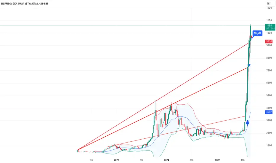 23 Temmuzda 22TL fiyat bandından portföye eklediğimiz ENSRI Sınai Yatırımlar geçen 44 Gün zaman zarfında hisse başına net 82TL kazandırmış olup an itibari ile 105TL fiyattan işlem görmektedir. Hisse de işlem hacmi an itibari ile100Milyon TL üzeri ancak geçen kısa zamanda bu kadar ciddi performans sergilemesi muhtemelen sermaye arttırımı ile ilgili veyahut ciddi projeler ve yatırımlar söz konusu. (Tesla ile mi ortaklık yapacak anlamadım ama 44 günde %372 nedir arkadaş space x'e marsa yolcu taşıma hizmetleri mi vereceksin, apple ile kuantum teknolojisi ile çip mi üreteceksin ne yani hikayen merak ediyorum) Zamanla bekleyip hikayesini göreceğiz. Şirket ünvan değişikliğine gitmiş 2025 yılında “Ensari Deri Gıda”dan “Ensari Sınai Yatırımlar A.Ş.” olarak şirketin deri dışındaki sanayi alanlarına girme niyetinin bir göstergesi olarak yorumlana bilir, Şirket raporlarında, “un ve ambalaj sektöründe faaliyet göstermek” üzere iki ayrı firmanın kurulduğu belirtiliyor. 2025 Ağustos’unda, çıkarılmış sermayesi 116,8 milyon TL’den 546 milyon TL’ye çıkarılacak şekilde bedelsiz sermaye artırımı yapılacağı duyurulmuş. Ortaklık yapısında “Ensari Yenilenebilir Enerji Anonim Şirketi” %100 bağlı ortaklık olarak yer alıyor. Bu, şirketin enerji yatırımlarına yöneldiğini gösteriyor. Neyse kısaca sözün özü orta ve uzun vadeciler için 22TL fiyat bandından yatırım yapılabilir dediğimiz ENSRI hissesi biz paylaşmaktan yorulduk lakin hisse tavan yapmaktan yorulmadı.
