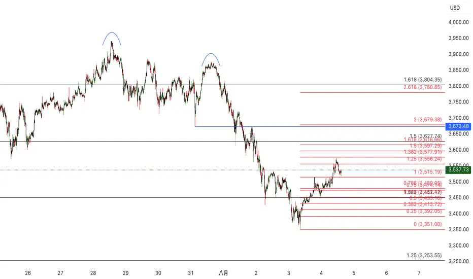 圖表中可以看到ETH走完雙頂之後出現頭肩底型態,目標價3679.38在雙頂的頸線位置附近,這個位置可視為ETH在短期內較強的支撐阻力位。