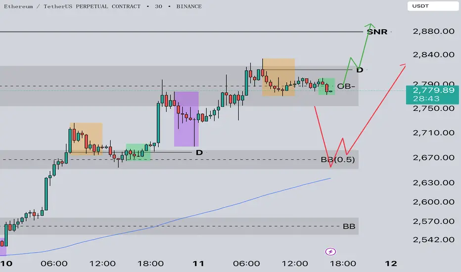 👉 當前整理區,若突破 OB 上沿 $2,820,將轉強延伸推進