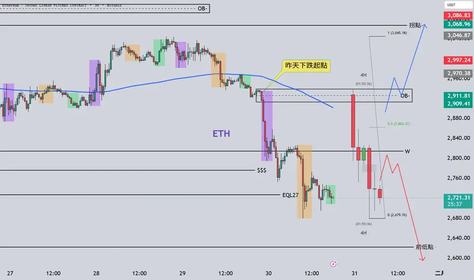 ETH 如期放量下跌 下一浪打穿2500? 日內交易計畫