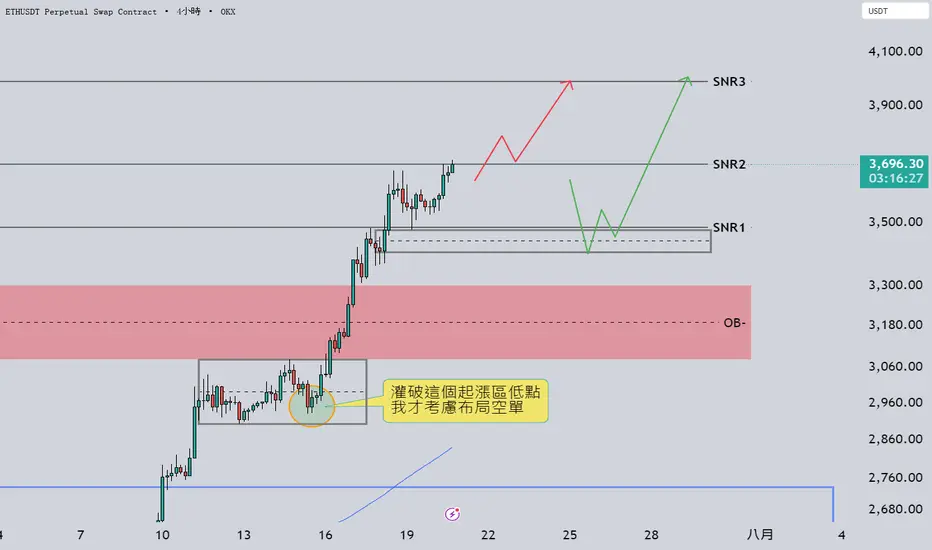 條件: 收盤突破 $3,700 並放量站穩 SNR2