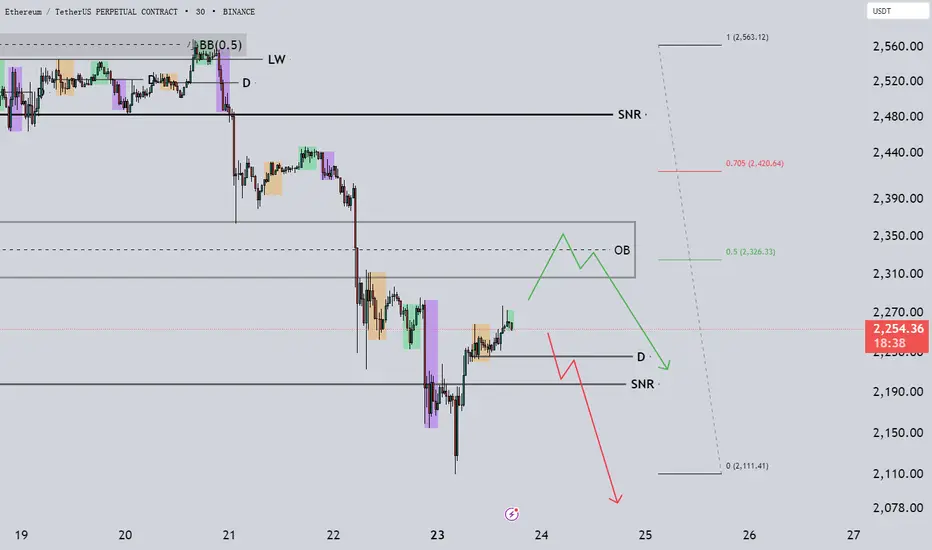 ETH 昨日強彈測壓,目前已進入前波 OB 區整理