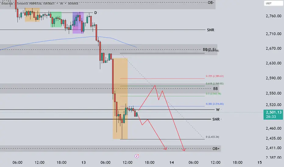 ✅ 若 SNR $2,485 失守,空方將加速推進至 OB+ 區