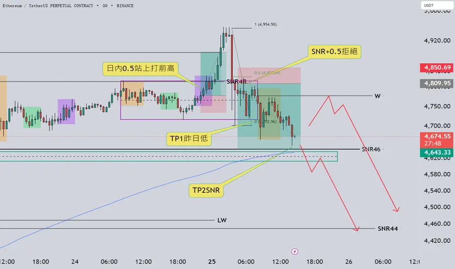 SNR46 支撐:$4,640 → 當前短線防守,失守則偏空延伸