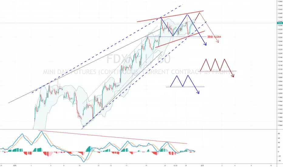 小德指 一路背離,目前為楔形或平行通道 橫盤,未來有以下三總走法: