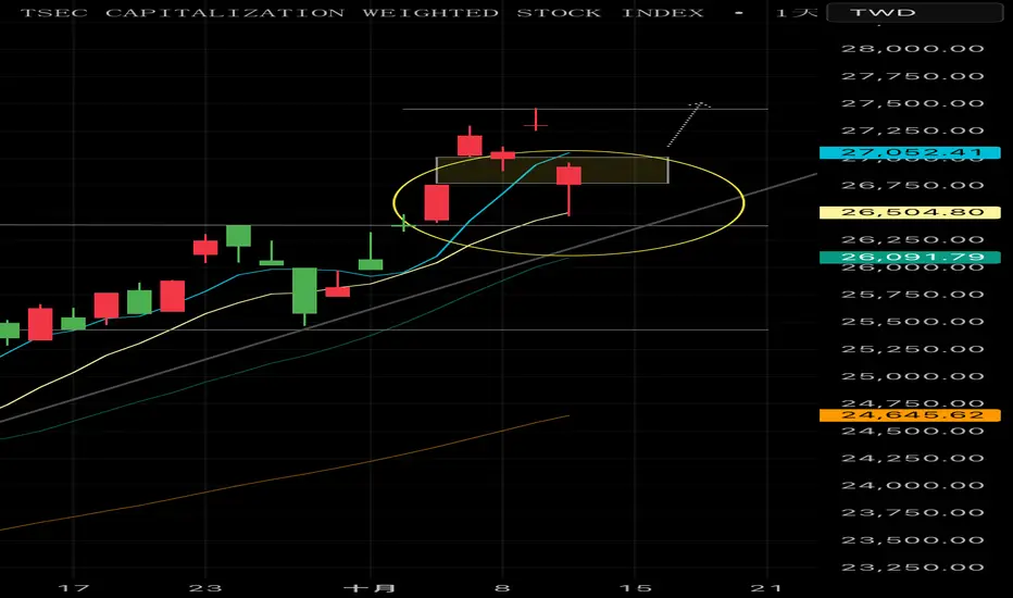 加權週一收盤跌勢收斂下跌378點失守5ma但守住多方缺口,隨著上述指數全面反彈,今加權估計也將反彈收復昨日跌幅!主要觀察5ma是否能站回及來到前高壓力的表現!