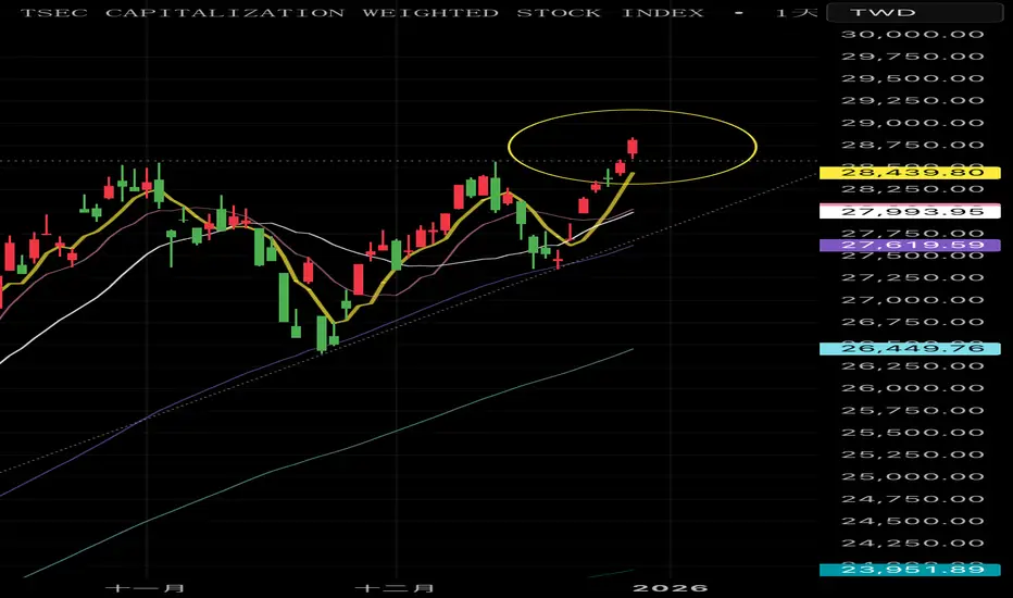 加權週一上漲254點創新高收在28810點,不過成交量未跟上只比週五稍長,在那斯達克/費半未創高反而跌破5ma轉弱的情況下,今天加權要注意前高與5ma支撐是否能守住!?