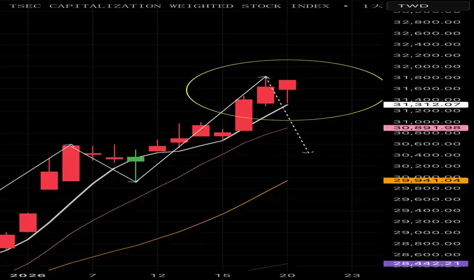 加權週二上漲120點收在31759點也守在5ma之上,綜合上述指數表現來看,即便費半/期指夜盤的跌幅較小但也都失守5ma轉弱,加權今天勢必反應並跌破5ma支撐轉弱,接下來觀察上週五大量低點30844是否能產生支撐阻擋此波修正!若失守必將回測月線!