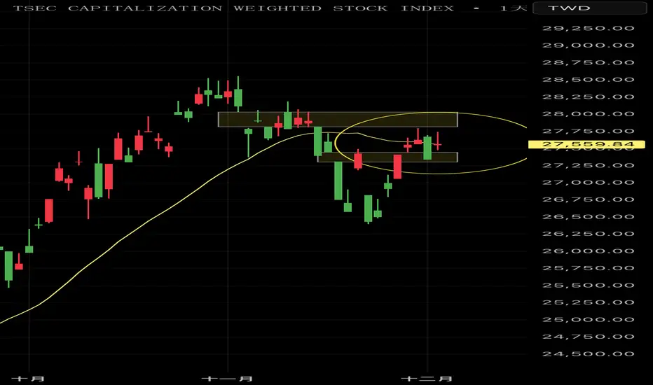 期指夜盤收漲241點站回均線,加權昨收盤上漲221點收27564點但還未站回均線,綜合上述指數表現今天上漲機率高,主要觀察站上均線後能否突破前波空方缺口壓力(27799~28033)!