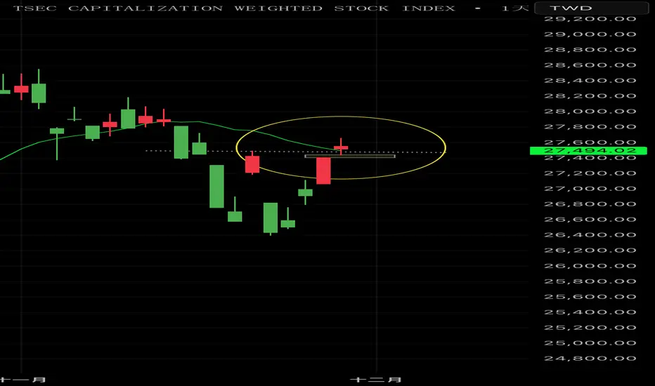 美指感恩節休市,期指夜盤雖站在月線/前高壓力之上但量縮收黑下跌24點,能不能站穩是關鍵!台積電觀察能否封閉缺口並站回月線!