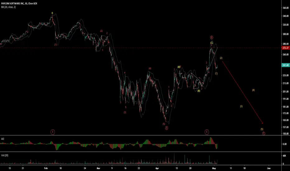 Paycom Software Inc (PAYC - US) is moving down in ABC wave pattern. B wave is zigzag having internal b wave as triangle, which may be result in sharp reversal. It is already made wave 1 down of wave C major.