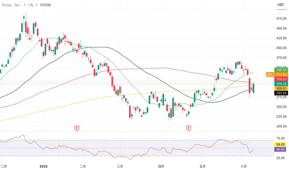 這波下跌中止了 Tesla 原本自 4 月中以來超過 60% 的漲勢。這段反彈一度受惠於科技板塊動能回升,但如今走勢已明顯轉弱。
