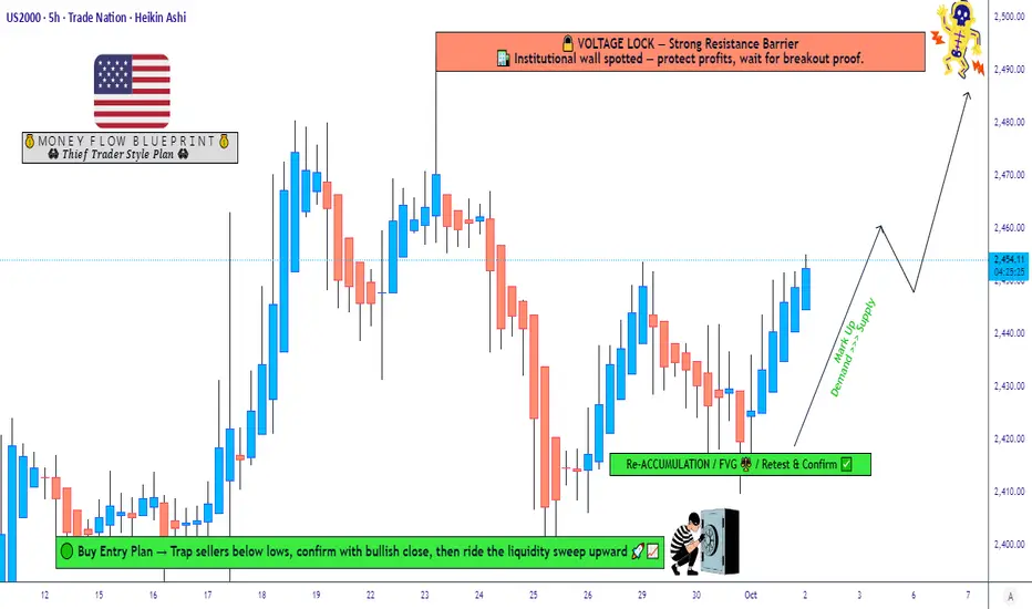 Ladies & Gentlemen (Thief OG’s) – here’s a fresh layering entry plan for US2000 with a bullish outlook. This is my playful "Thief Strategy" style — multiple entries, multiple chances, and yes… multiple exits too. 😎