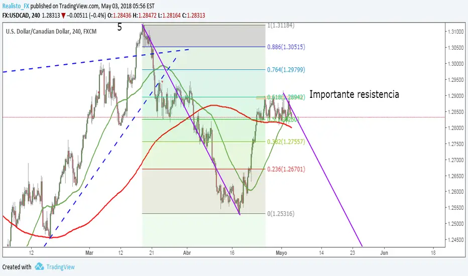 USDCAD presenta una fuerte resistencia en el entorno de 1.29 , después de varios intentos no ha podido romper el nivel.