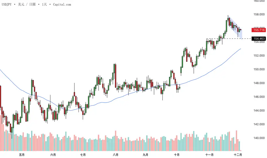 從圖表來看,市場動態比新聞頭條更顯冷靜。USDJPY 曾回測日線圖中的小型下降通道(多頭旗形下緣),隨後迅速獲得支撐並收復大部分跌幅。整體賣壓相對可控,K 線波幅收窄,並始終維持在上升的 50 日均線之上。若市場真的相信 BoJ 即將轉向,理應看到更強的下行延續,但實際表現相當溫和。