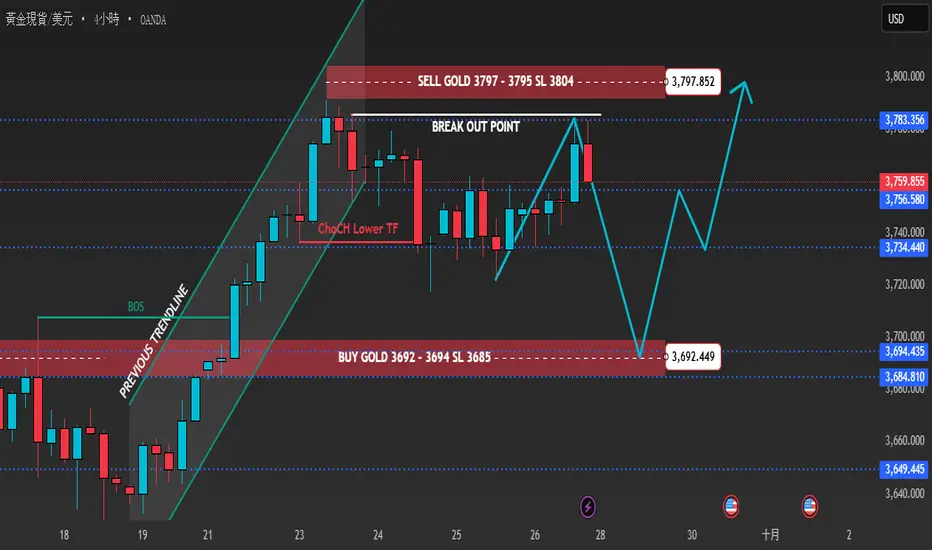 • 🔽 賣出區域 3,795 – 3,797 (止損 3,804): 高價供應區,流動性掃描可能引發短期反彈。