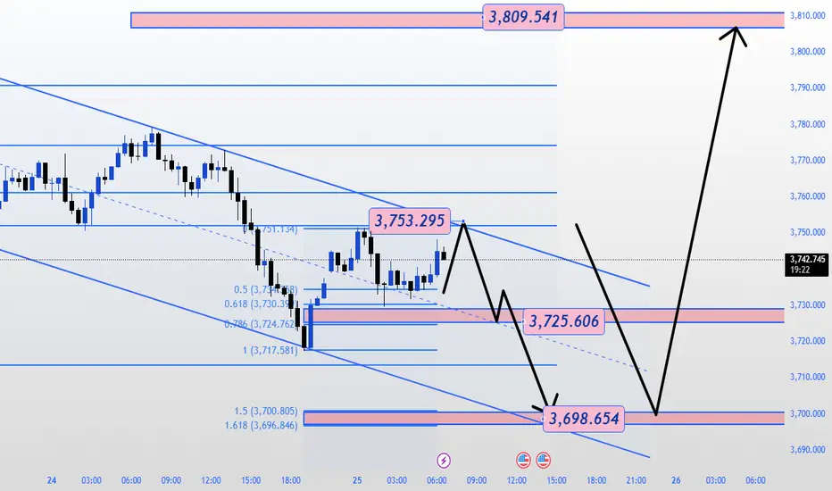 🟢 主要買入區:3698 – 3700 (Fibo 1.5 – 1.618 匯合區)