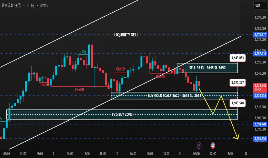• 🔴 SELL ZONE 3,643 – 3,645 (SL 3,650): 高位供給區,短線回落阻力。