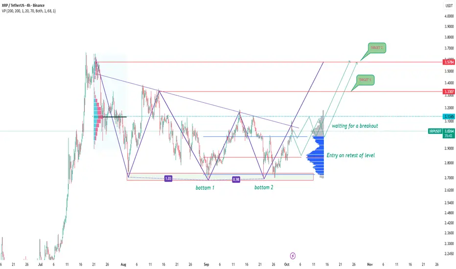 On the 4H chart, XRPUSDT is shaping a double bottom around the 1.00 level, and the price is now approaching the key resistance area at 3.14–3.32. A breakout above this zone would be a strong confirmation that the bearish phase is losing momentum.
