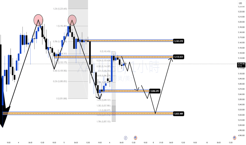 如果市場重新佔據5180–5200區域,黃金可能會延續回升至5220–5230(斐波0.618 + 供應區),然後出現新的賣壓。