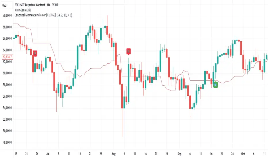 The Canonical Momenta Indicator [T1][T69] models trend pressure using a Lagrangian-based momentum engine combined with reflexivity theory to detect bursts in price movement influenced by herd behavior and volume acceleration.
