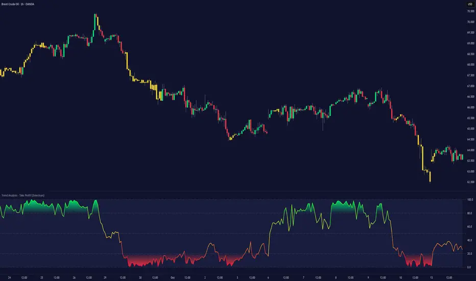 Trend analysis - Take Profit (Expo) indicator is developed to visualize ‘Lock In Profits -points' in trends. It’s a necessity for a professional trader to continuously ‘Lock In Profit’ in order to grow their balance and to reduce their risk. In fact, research shows that exits have more impact on the results than any other factor (Tharp, 2006). So when the indicator shows a ‘TP’ - point, start to lock in some of your profit and continuously do so on every TP - point and exit the trade when a circle is shown.