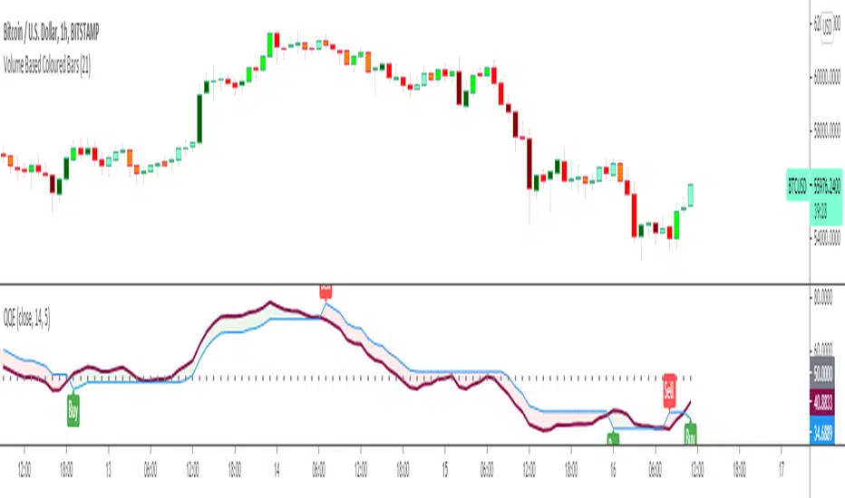 The most common method of using QQE is to look for crosses of the fast and slow moving trailing stop lines during periods when the QQE line reflects overbought or oversold conditions