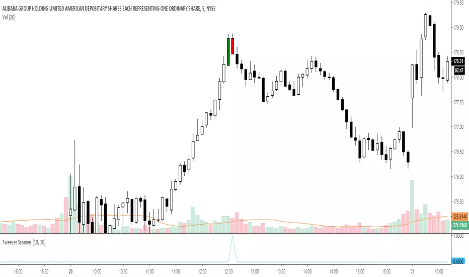 This indicator highlights the tweezer tops and tweezer bottoms on the chart it is applied on.