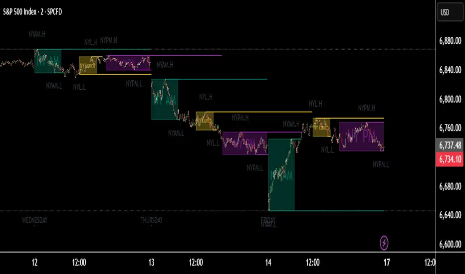 Premarket sessions and zone indicator full customization for premarket, yesterdays high and low , london, asia after hours etc.