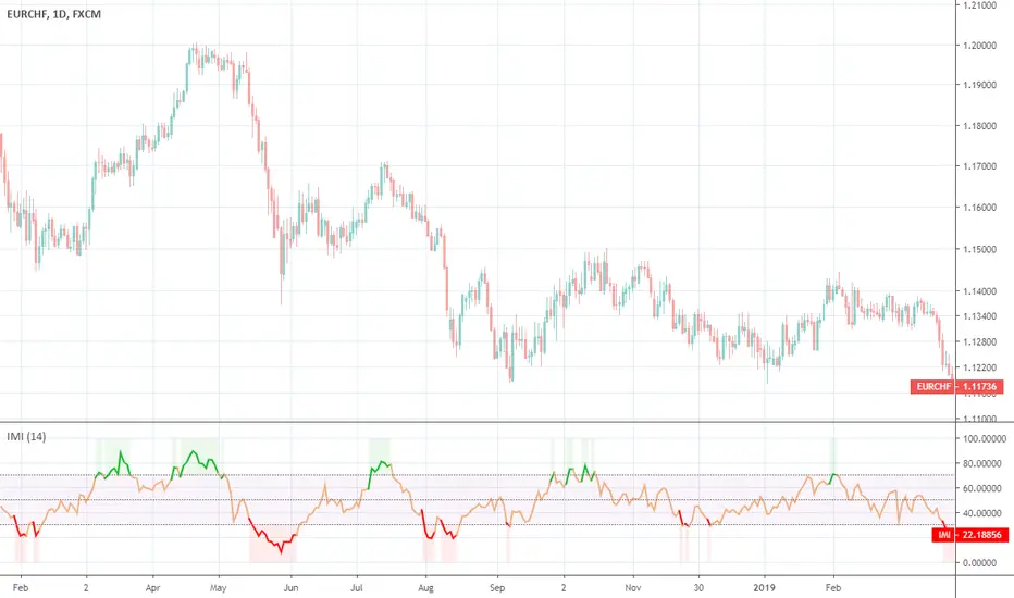 Intraday Momentum Index indicator script. This indicator was originally developed by Tushar Chande.