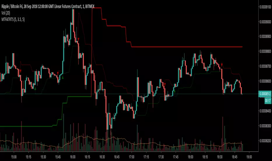Multi-timeframe Average True Range Trailing Stops. Only overlay *HIGHER* timeframe only. Higher timeframe ATR lines are displayed as thicker lines.