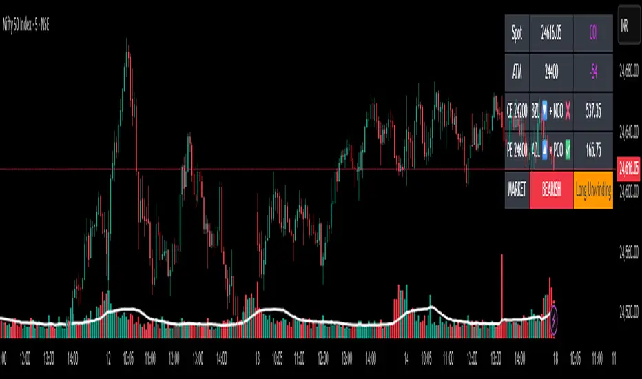 This logic is displayed in the script's output table for clear, real-time tracking of market sentiment through open interest analysis. It helps traders quickly interpret whether the current market action is dominated by new buying, new selling, profit booking, or covering of positions.
