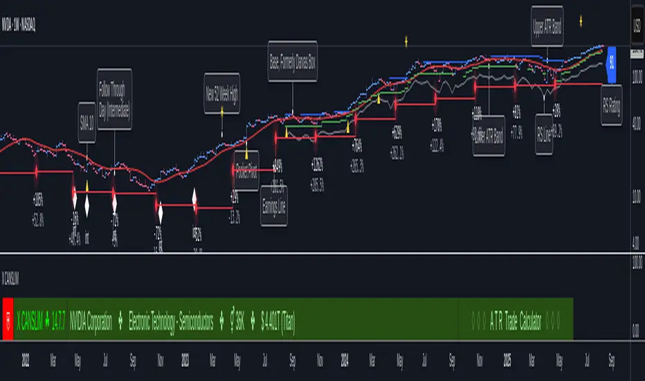 The Extended CANSLIM indicator is an indicator that concentrates all the tools usually used by CANSLIM traders.