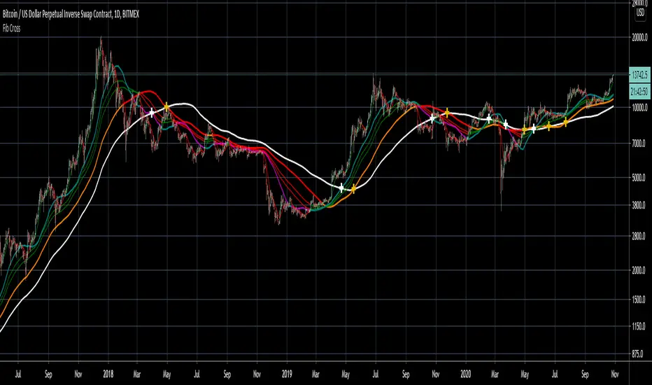 The white line is the main 200-candle MA. The fibonacci ratio MAs are relative to that 200-day MA. Some lines change color based on the trend shown by this indicator.