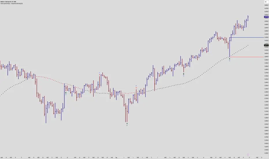 Trigger Lines: When a strong VSA bar appears, the script draws horizontal levels at the bar’s high and low. These act as educational “zones” where future price reactions can be studied.