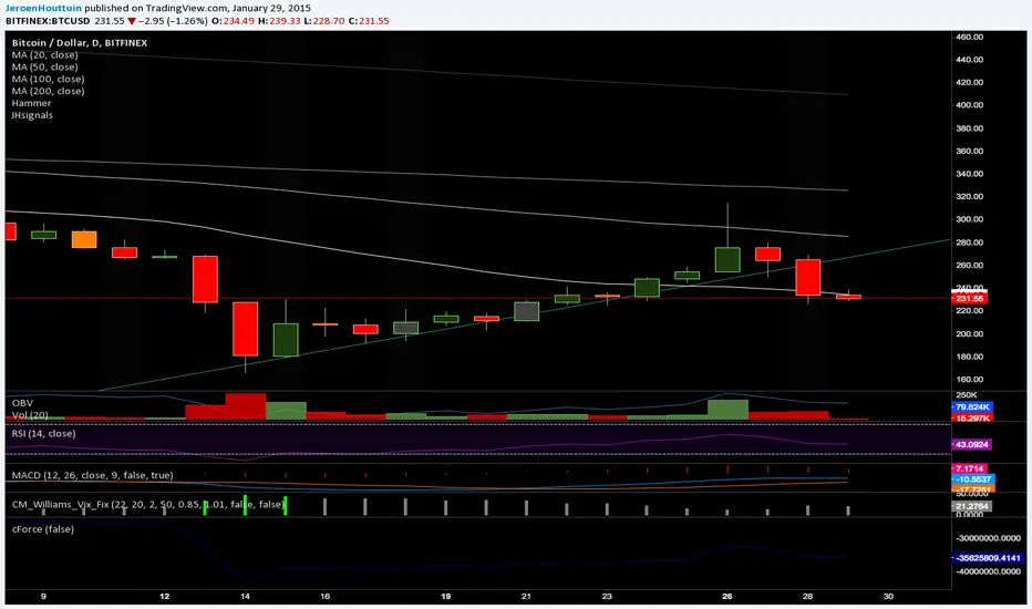 Cumulative Force Indicator. Can also be seen as an OBV indicator that takes the price differences into account. In a regular OBV, a high volume bar can make a huge difference, even if the price went up only 0.01, and it it goes down 0.01 instead, that volume makes the OBV go down big time, even though in both cases hardly anything really happened. cForce is a more realistic view on where the money is flowing.
